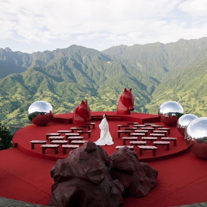When the wedding of Giang Bùi and Tú — themed “The Red Horse & The Silver Balloon” — was featured on Vogue, the world once again turned its gaze to Vietnam, recognizing a new pinnacle of creative expression and artistry. Set against the breathtaking backdrop of Sapa, the wedding became a living piece of contemporary art: a red carpet cascading down the cliffs, sculpted horse statues, and ethereal details woven together like a dream.
