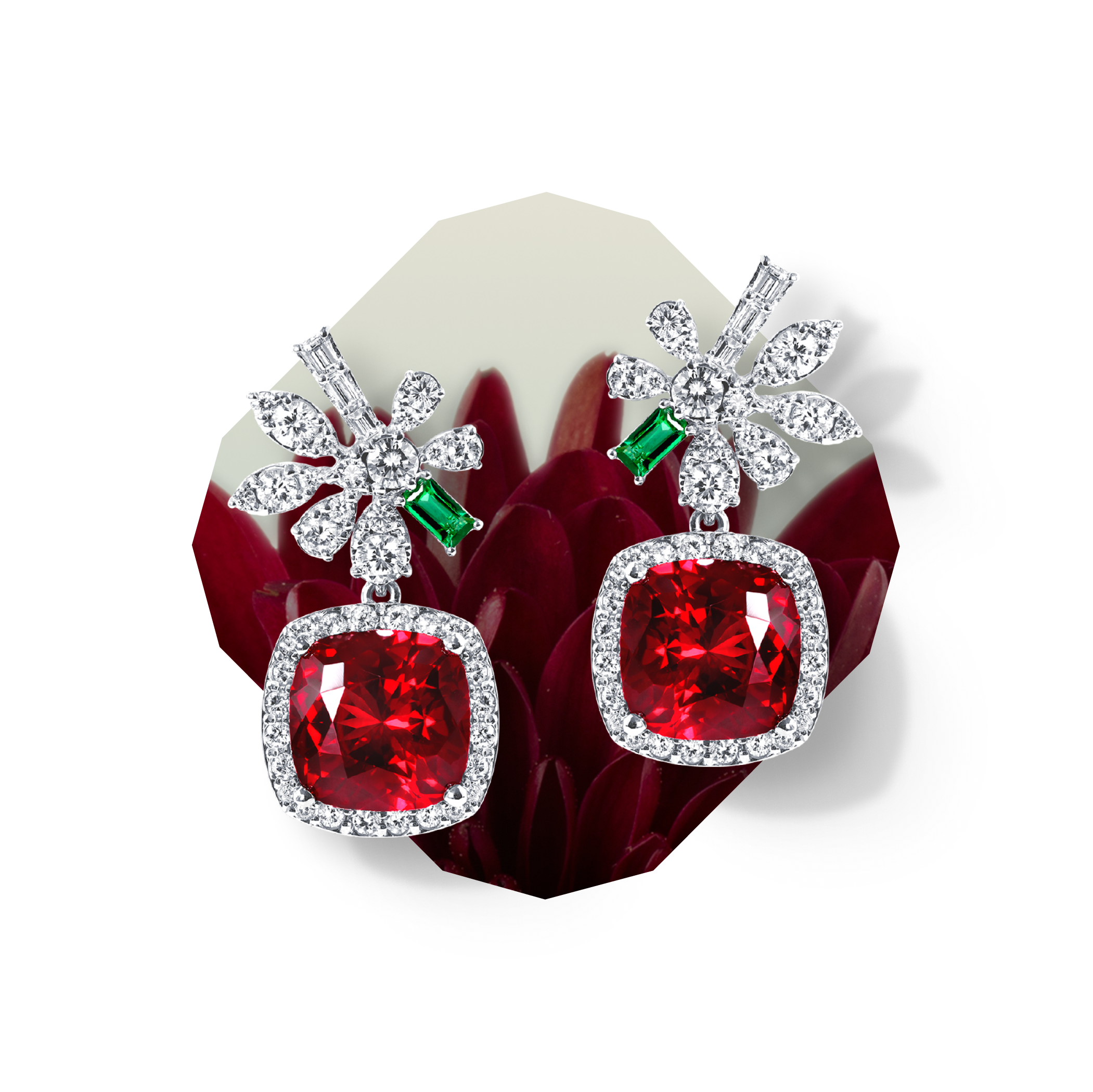 The striking center gemstone, harmoniously embraced by brilliant white diamonds, composes a captivating symphony—timeless, elegant, and forever in perfect rhythm.